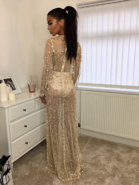 Stun the world in this bold, tassel cover up! Look sexy with its long sleeve, bling bling long dress!