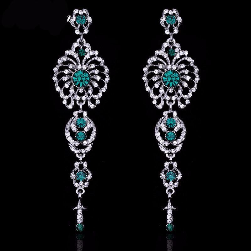 Crystal Green Chandelier Earrings - SexyBling