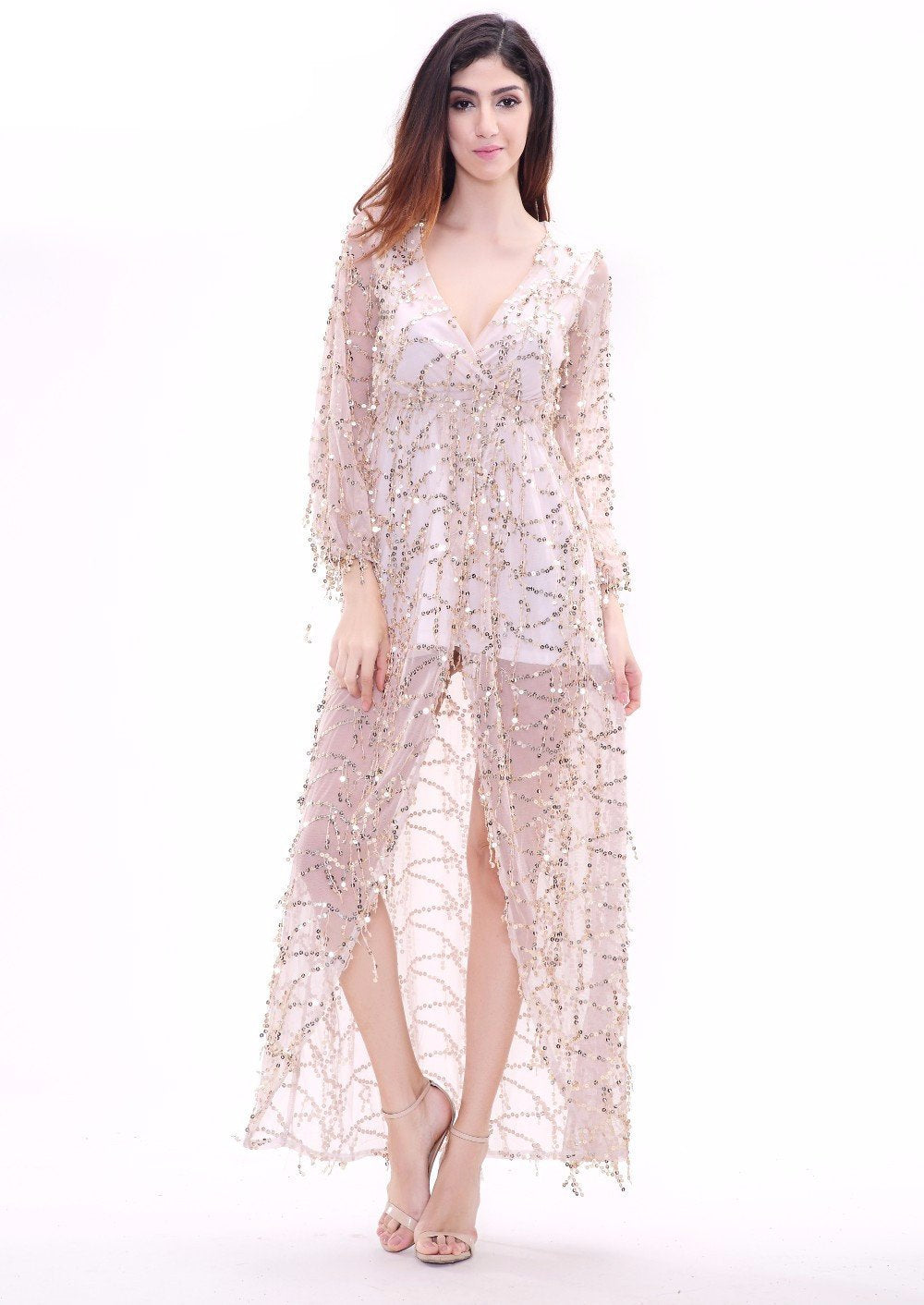 Every girl deserves to be treated like a Princess! Treat yourself with this sexy, fringed, V-neck Maxi Dress!