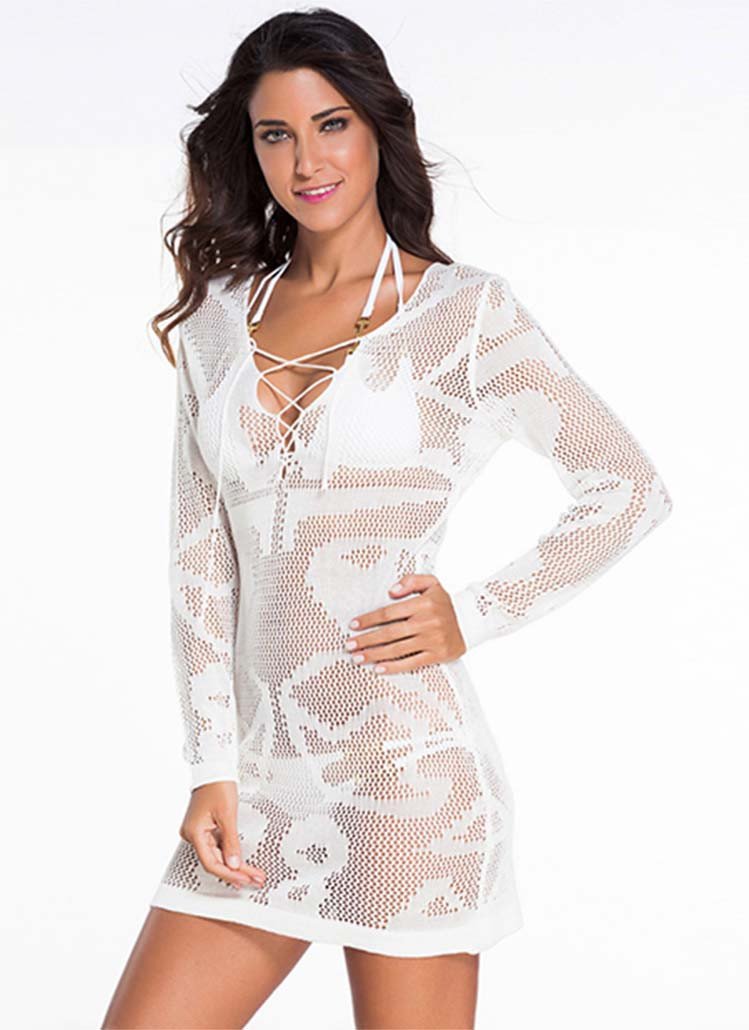 Feeling the cool ocean breeze? This knitted, crochet cover up is perfect for you! With mesh, you will feel warm and sexy in this bling!